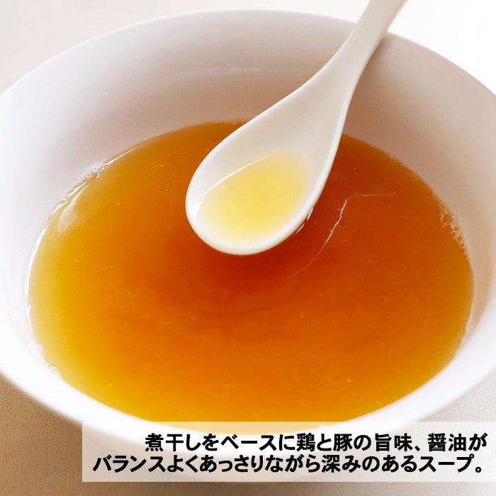Soup (protein hydrolysate (manufactured in Japan), salt, fermented seasoning, soy sauce, animal fat, niboshi extract, sugar, chicken extract, spices/seasoning (amino acid, etc.), sake spirit, caramel color, thickener (guar), antioxidant (vitamin E), (contains wheat, soybeans, chicken, pork)
